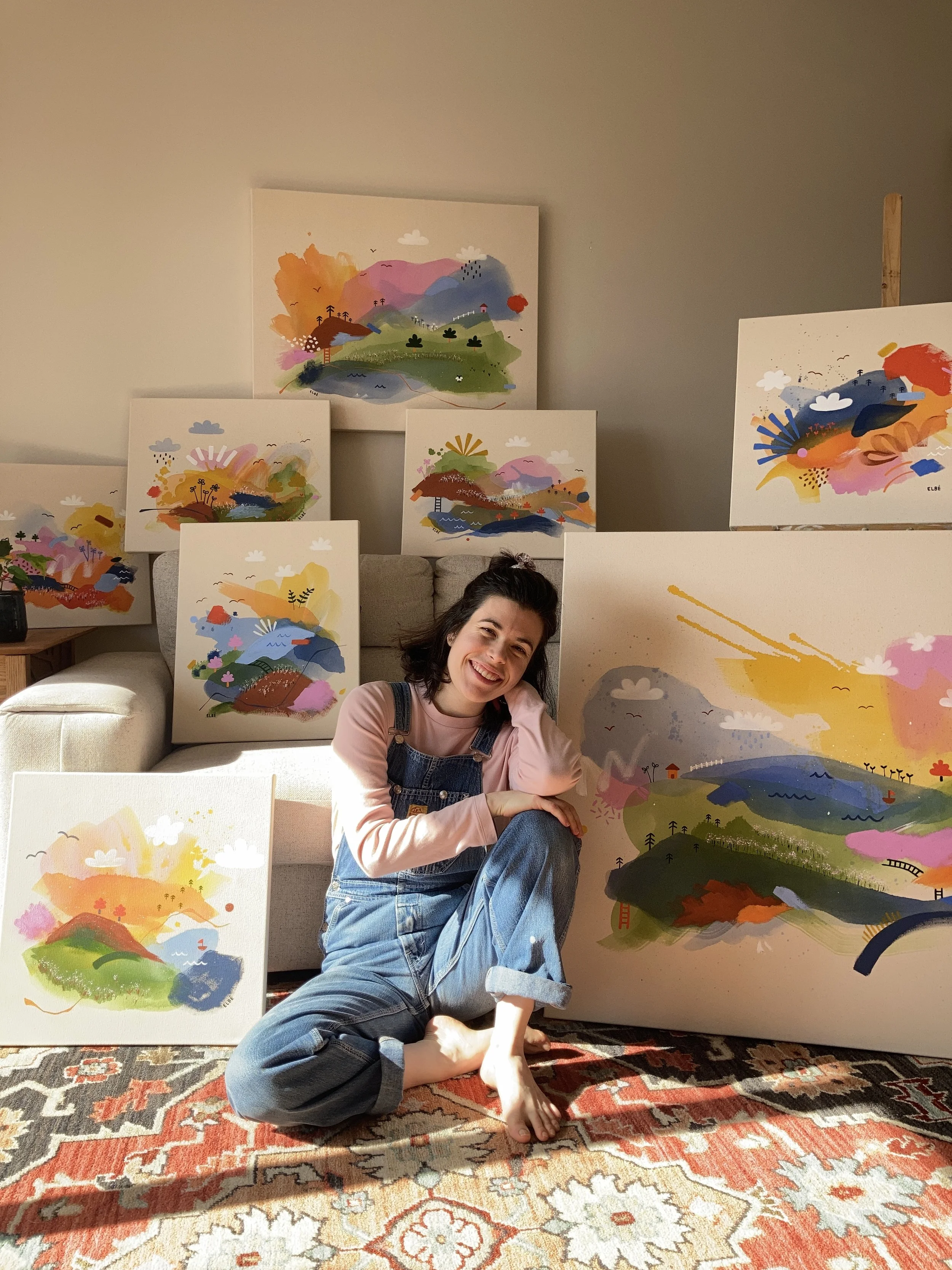 Inspirée par le printemps, l’énergie du renouveau et les grands espaces, j’ai créé cette collection dans la joie et l’exploration. Portée par une gestuelle à la fois libre et à la fois réfléchie, je me suis retrouvée à faire naître ces bulles lumineuses et apaissantes.